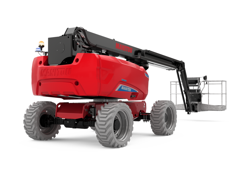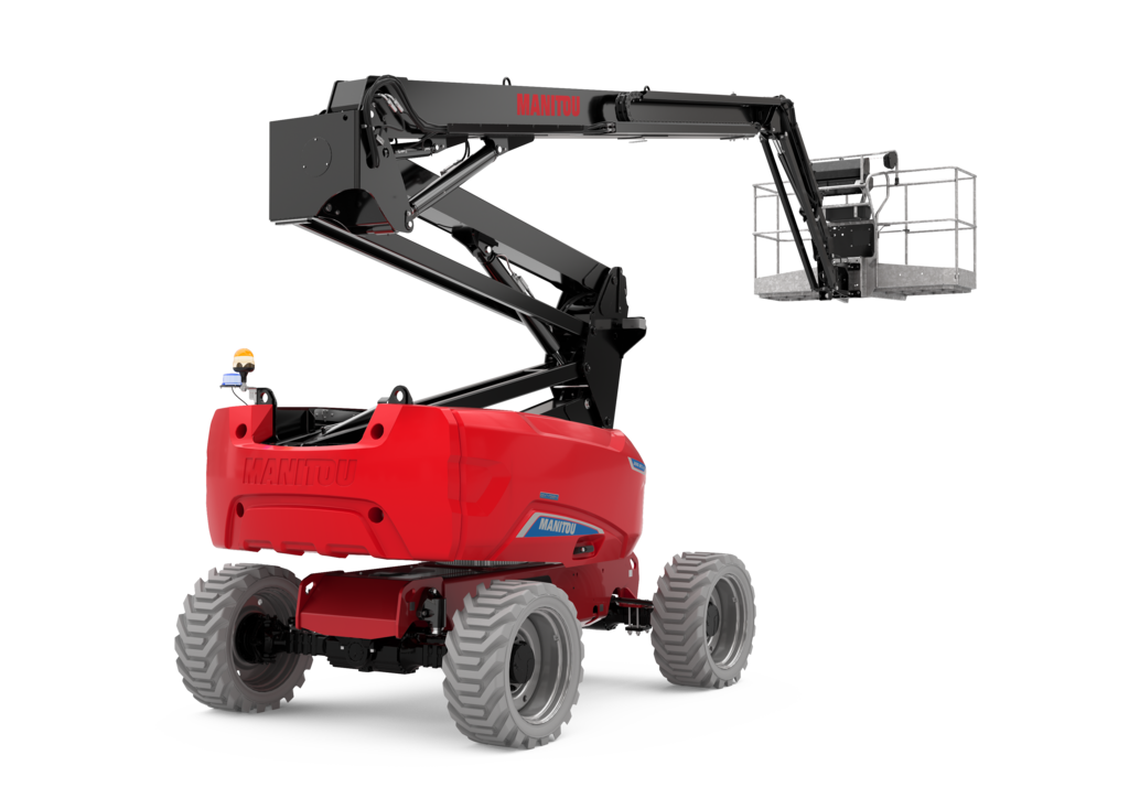cesto zincato spazioso e resistente, altezza da terra importante, asse oscillante attivo, 4 ruote motrici, 4 ruote sterzanti, rotazione continua, capacità di carico unica sul mercato degli elevatori a braccio articolato, 4 movimenti simultanei…